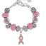 Show your support with our beautiful Pink Ribbon Charm Bracelet. This elegant piece features a delicate pink ribbon charm symbolizing breast cancer awareness, crafted with premium alloy and sparkling crystal accents.